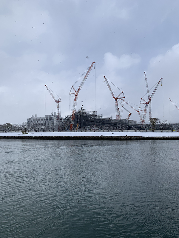 クレーンが颯爽と立ち並んでいる中の撮影でした。