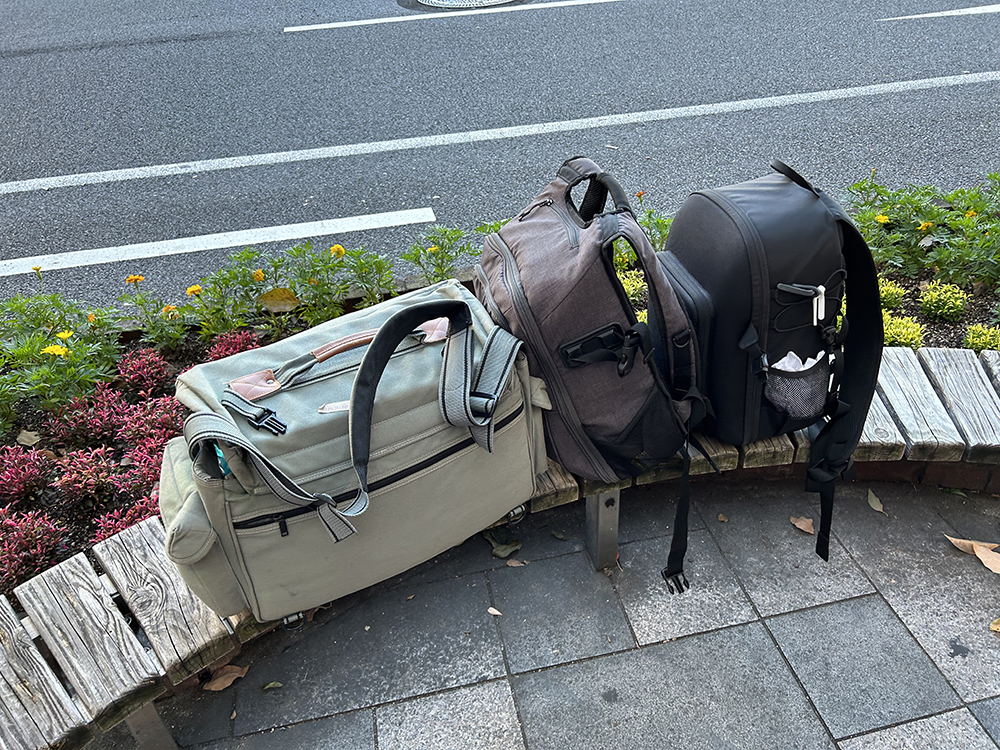 今回はロケ車に演者と一緒に同乗しないといけなかったので最小機材での撮影ですが、最低2機は持参しないと仕事にはなりません。