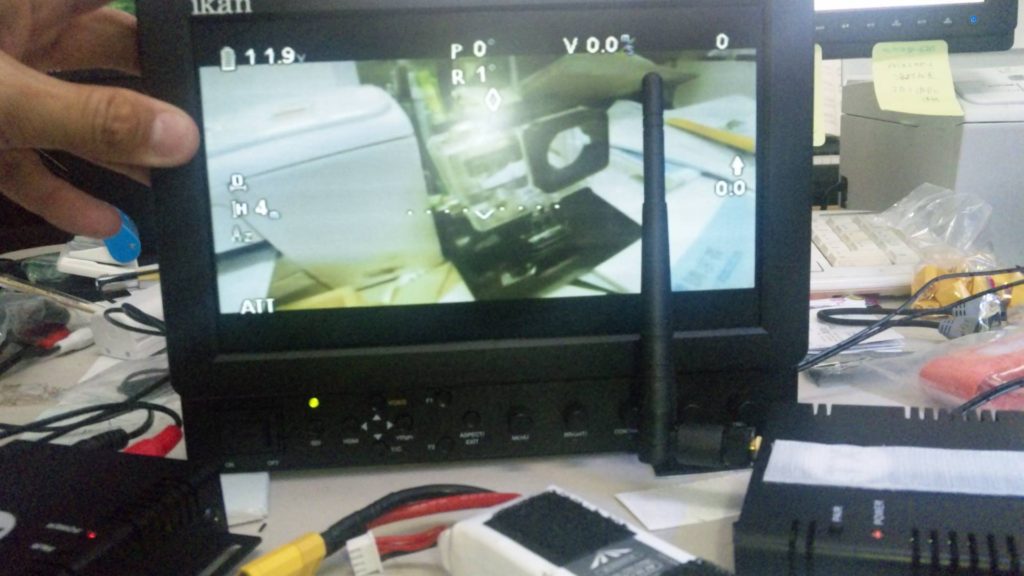 FPVとはラジコンヘリに付けたカメラの画像をプロポの前で見れる画像転送装置の事で、これで少し遅延はありますが、ほぼリアルタイムで構図を確認できる機械です。 近距離は撮影している絵は分かるのですが100m以上離れた時に確認する用とクライアントの偉い人が見る用です!!!